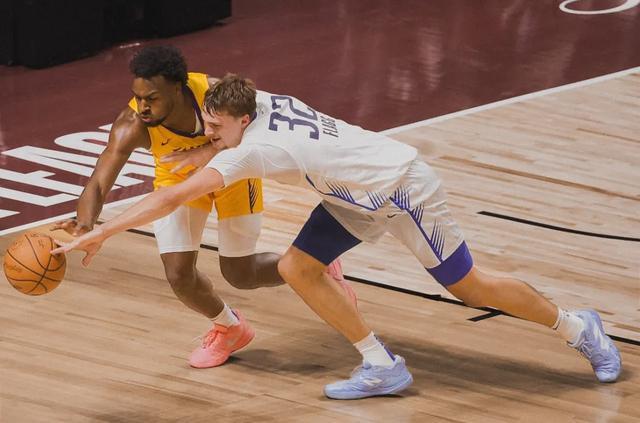 第一场三分5中0,第二场三分提升到了8中3,对于NBA级别的射程,弗拉格适应的还算顺利。他的接球投三分比持球投要更好,这说明了他非常扎实的基本功。至于转换进攻就更加是他的舒适区,非常善于高空作业。